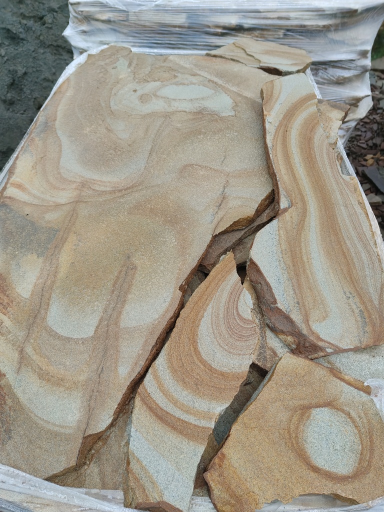 Песчаник жёлтый с разводами для облицовочных работ 10-20 мм